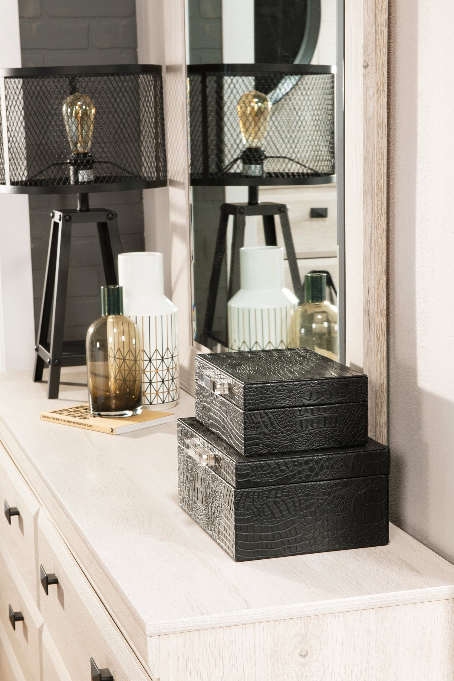 Embrace the feeling of contemporary style with the Yorkdale white mirror. A light finish made from engineered wood creates a neutral base to pair perfectly with almost any room decor. The broad mirror surface helps add a sense of extra space to your room. The thick, square frame lets the natural look of the wood shine through. Let the sleek, modern design of the Yorkdale mirror help you build the perfect space for rest and relaxation.