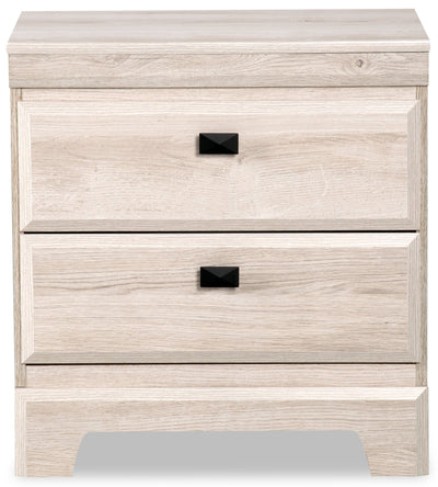 Embrace the feeling of contemporary style with the Yorkdale white nightstand. A soft birch finish made from engineered wood creates a neutral base to pair perfectly with almost any room decor. Rectangular pewter handles decorate the front of the drawers and adds a metallic contrast to the light finish colour. Let the sleek, modern design of the Yorkdale wight nightstand help you build the perfect space for rest and relaxation.